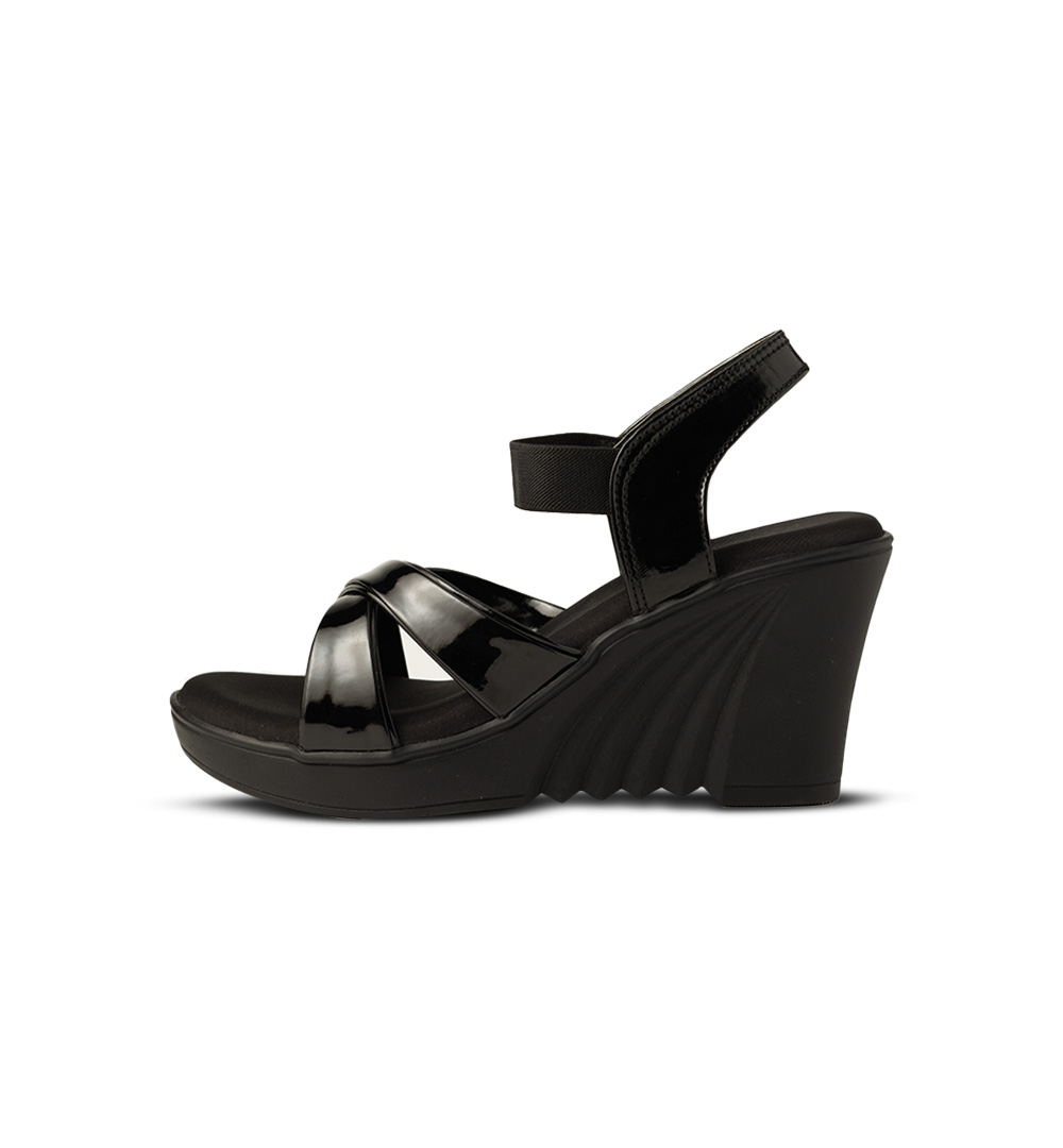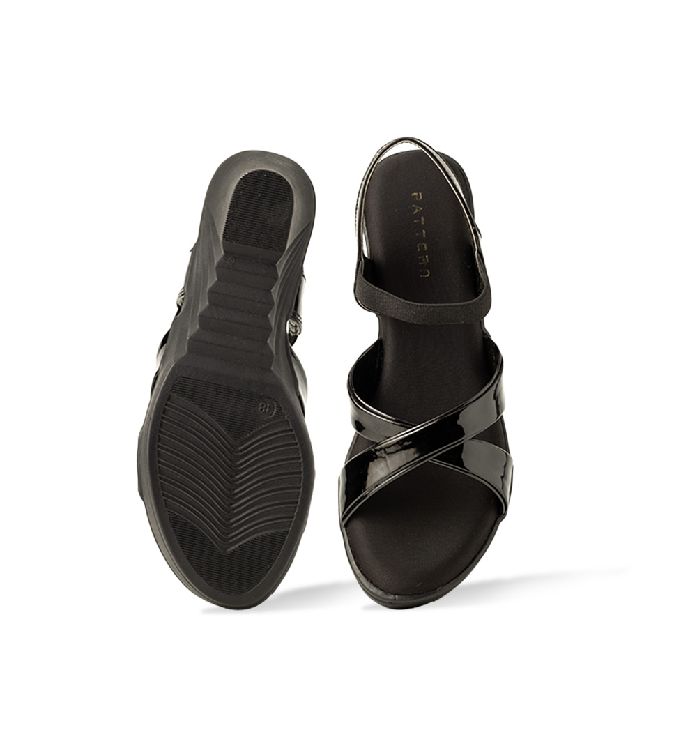 Make a bold statement with these Black Patent Cross-Strap Wedge Sandals, designed for both elegance and comfort. The glossy patent upper, featuring chic crisscross straps, adds a touch of sophistication, while the secure ankle strap ensures a snug fit. The wedge heel offers a comfortable lift, perfect for extended wear without compromising style. With a cushioned footbed and sturdy sole, these sandals are ideal for casual outings, office wear, or evening events. Pair them with dresses, skirts, or trousers for a polished and refined look.