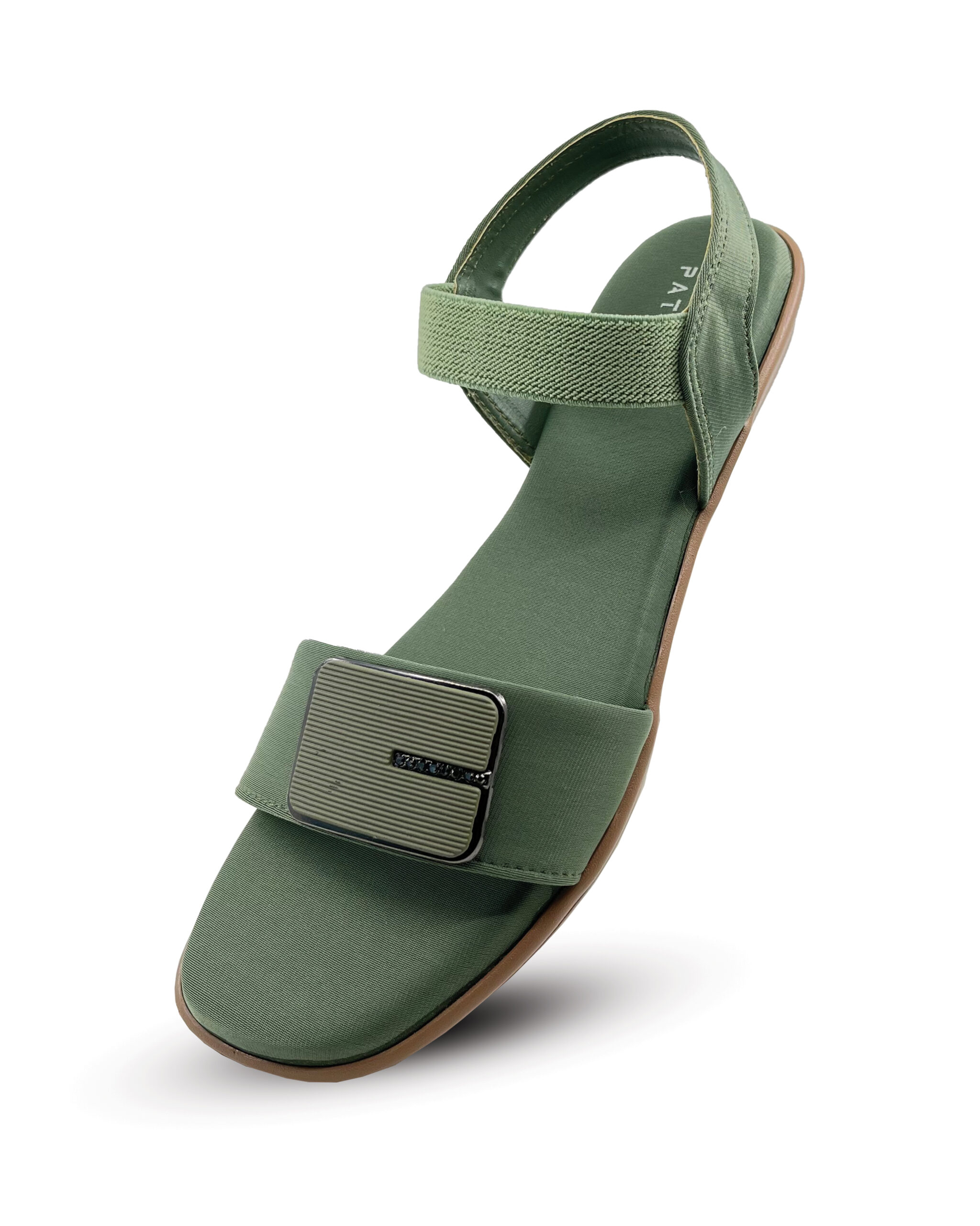 Step into effortless style and comfort with these chic green sandals. Designed with a sleek modern look, they feature broad straps for a secure fit, enhanced by a textured metallic buckle detail on the front strap that adds a touch of elegance. The ankle strap ensures stability, while the cushioned sole provides all-day comfort. Perfect for casual outings, summer wear, or pairing with both western and ethnic outfits, these sandals bring together simplicity and sophistication in one versatile design.