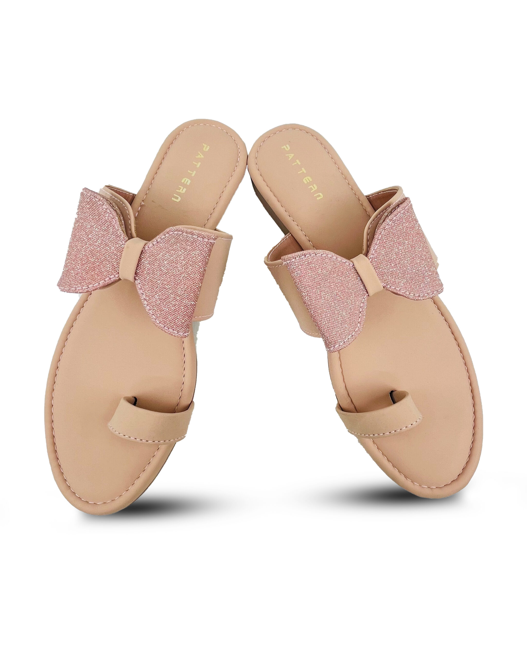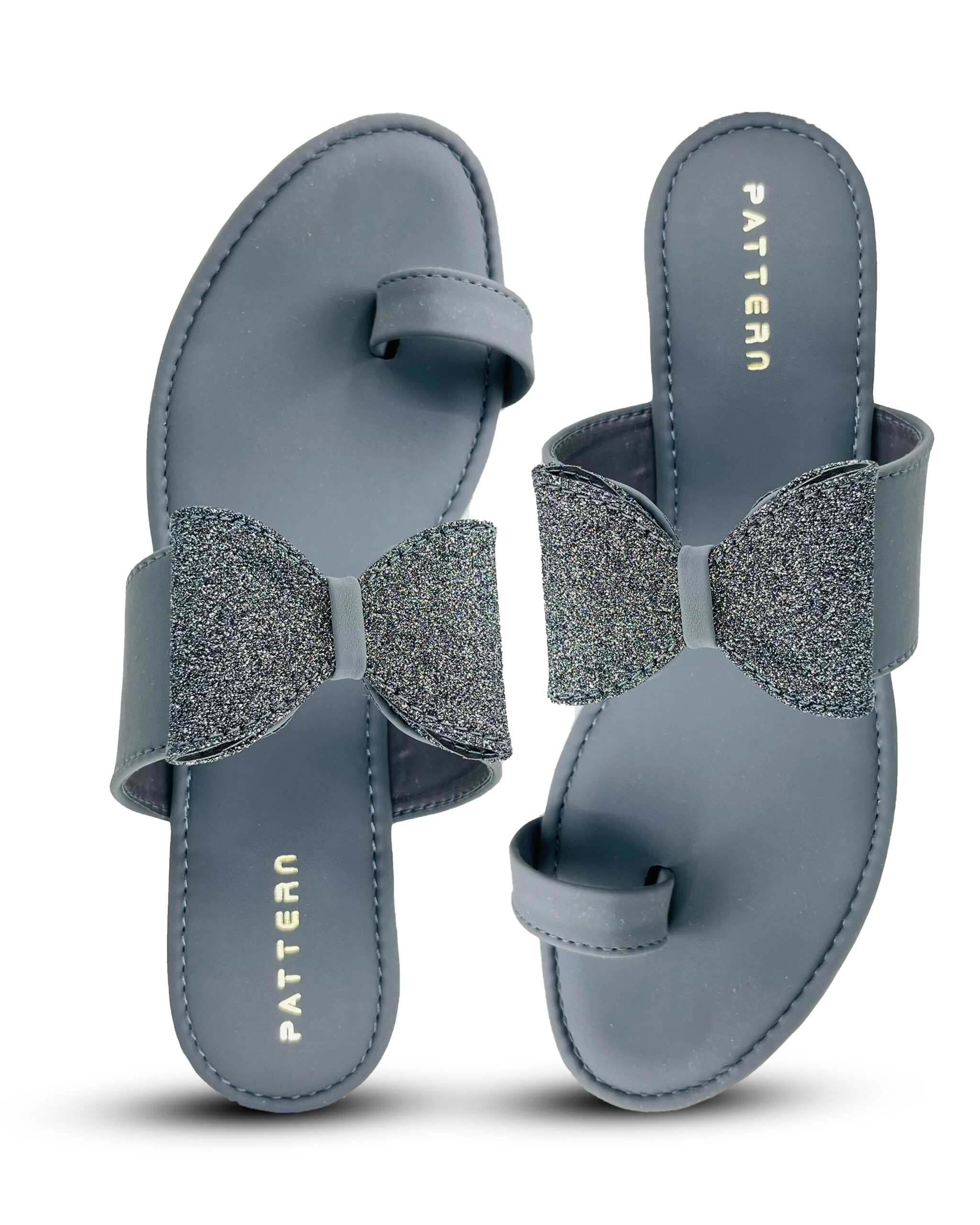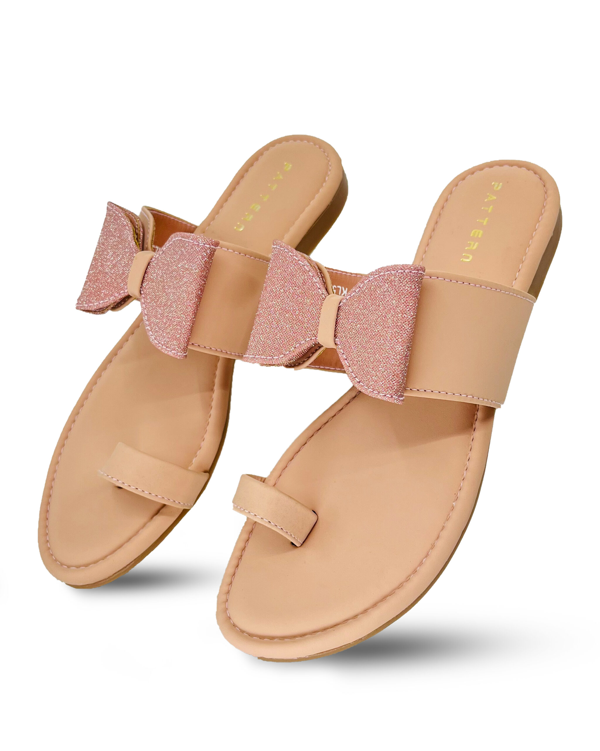 Step into elegance with these stylish chikku slip-on sandals, designed for both comfort and charm. Crafted with a soft cushioned sole and a sleek toe loop for a secure fit, these sandals feature three glittery bow accents across the strap, adding a touch of sparkle to your everyday look. Perfect for casual outings, festive occasions, or pairing with ethnic and western wear, these lightweight sandals combine fashion and ease effortlessly.