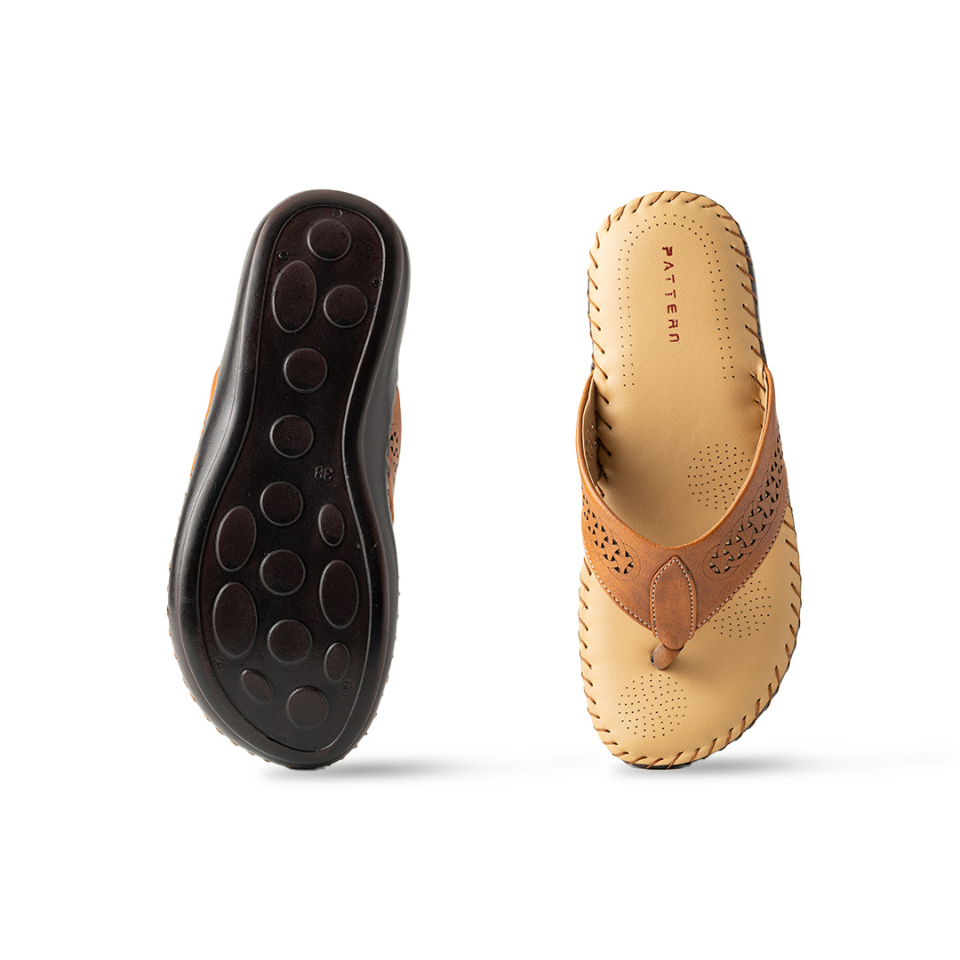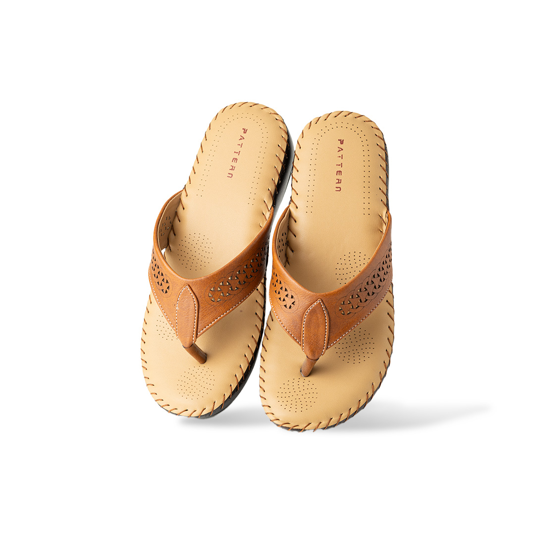 A perfect fusion of traditional craftsmanship and modern comfort. These brown V-strap flip-flops feature an elegant hand-stitched design along the edges, adding a unique artisanal touch. The cushioned footbed ensures all-day comfort, making them an ideal choice for casual outings, vacations, or daily wear.